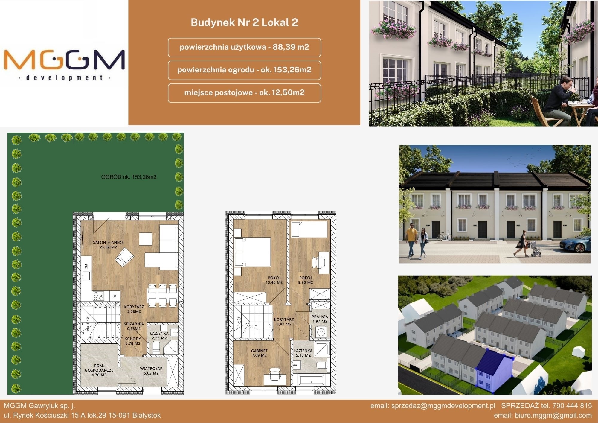 | Adres | Powierzchnia mieszkania Pow. | Powierzchnia ogrodu Ogród | Pokoje | Status | Szczegóły |