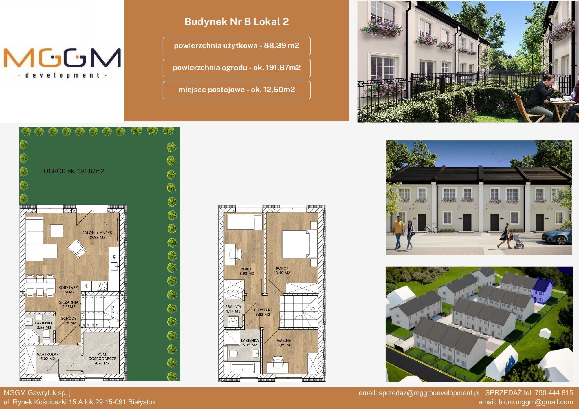 | Adres | Powierzchnia mieszkania Pow. | Powierzchnia ogrodu Ogród | Pokoje | Status | Szczegóły |