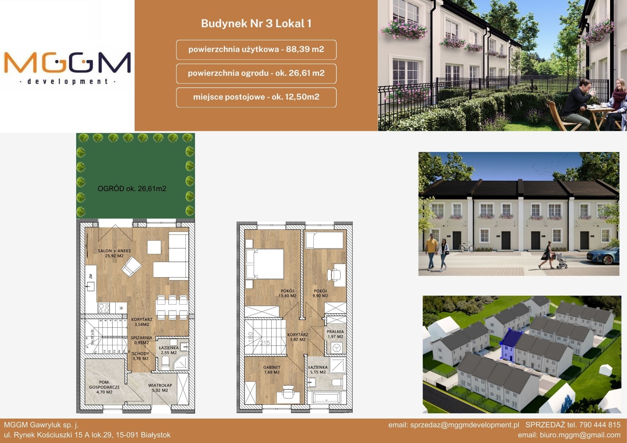 | Adres | Powierzchnia mieszkania Pow. | Powierzchnia ogrodu Ogród | Pokoje | Status | Szczegóły |