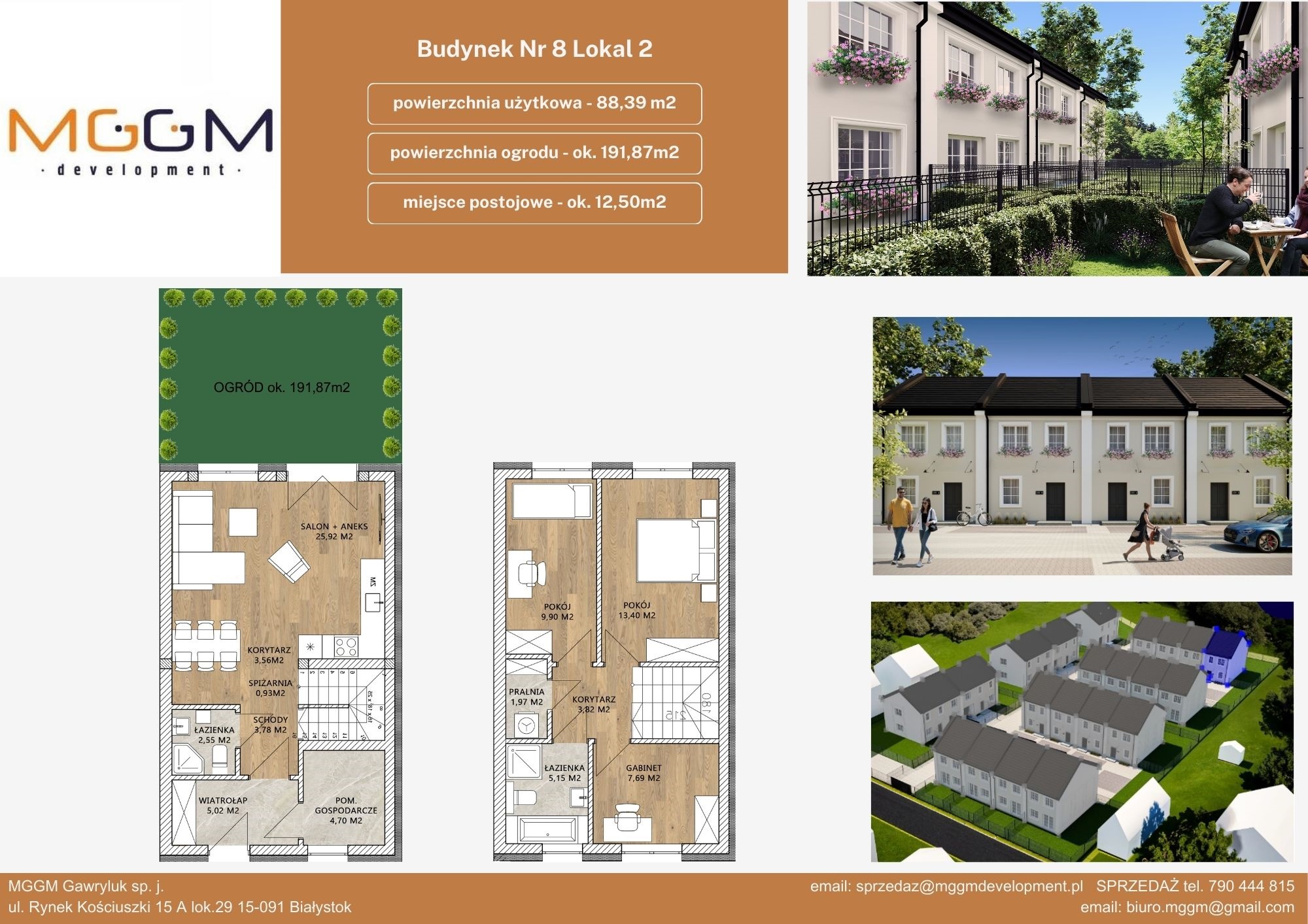 | Adres | Powierzchnia mieszkania Pow. | Powierzchnia ogrodu Ogród | Pokoje | Status | Szczegóły |